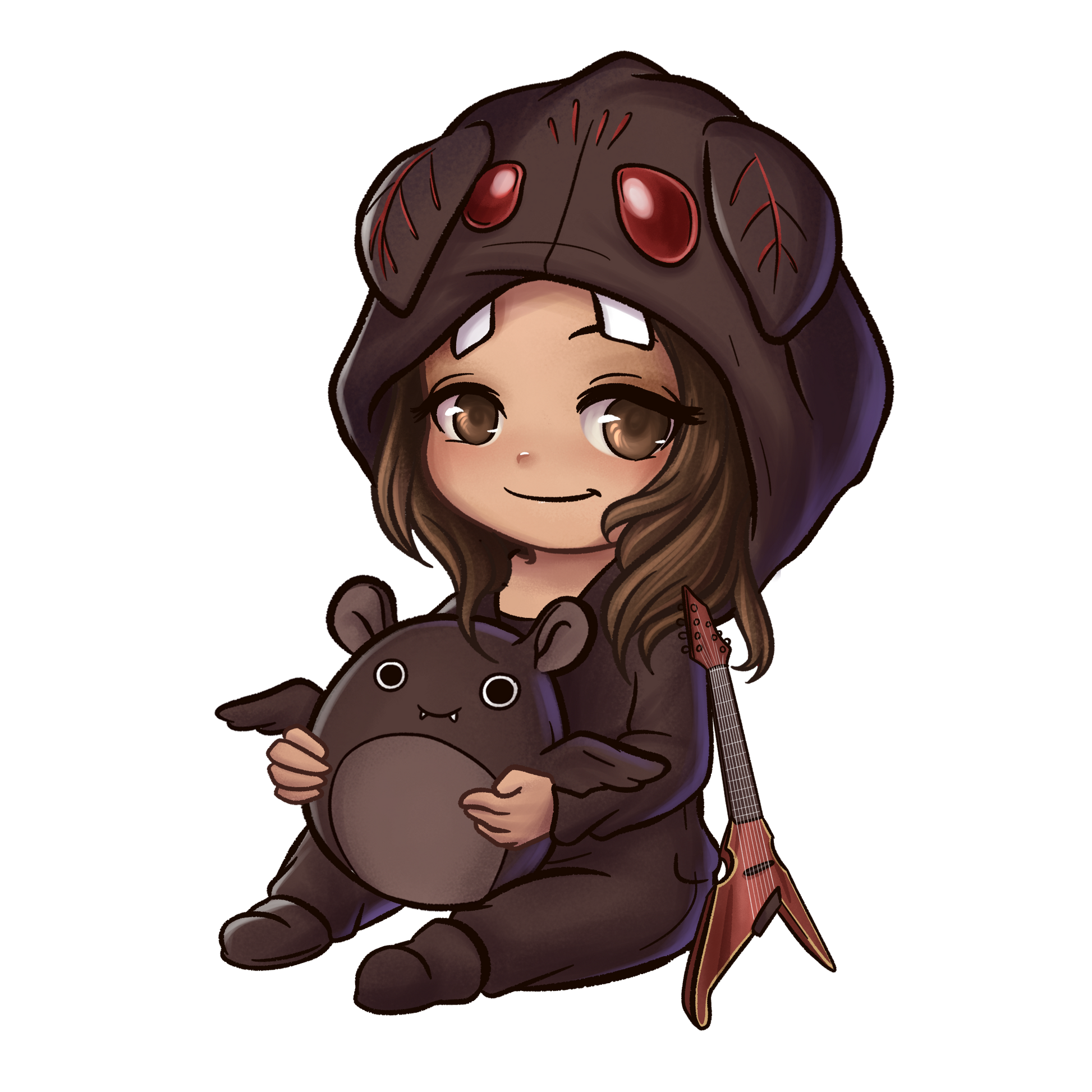 From the woods of Colorado emerges the most mysterious cryptid of all: the MothMia. With her trusty companion Batthew the Bat by her side, Moth-Mia can be found in many cities across the world, playing her violin and hiding from the sun.
